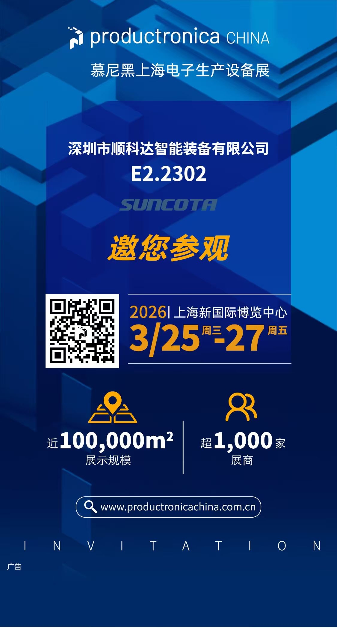InvitationFair: Productronica Munich Shanghai 2026Date: March 25 – 27, 2026Venue: Shanghai New International Expo Centre (SNIEC)Address: No. 2345, Longyang Road, Pudong New Area, ShanghaiOur Booth No.: E2.2303